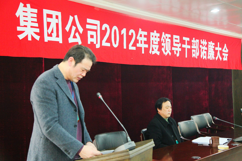 圖為集團董事長倪阿泉向干部職工作廉政承諾