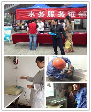 供水便民服務(wù)隊(duì)“三進(jìn)”活動由分公司經(jīng)理親自帶隊(duì),實(shí)地走訪了蘭亭鎮(zhèn)婁宮村、蘭亭中學(xué)及紹興縣紅盛紡織有限公司,并為用戶免費(fèi)提供管網(wǎng)聽漏、水質(zhì)檢測和清洗水龍頭濾網(wǎng)等供水設(shè)施例行維護(hù)等服務(wù),得到了用戶的一致好評。此次“三進(jìn)”活動,還推出“進(jìn)村入戶”用水設(shè)施檢修服務(wù)活動,上門免費(fèi)對婁宮村的3戶村民和1家餐館開展水嘴、抽水馬桶檢查,水質(zhì)檢測及供水管道改道換裝等服務(wù),得到了村民的高度贊揚(yáng)。